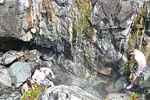 Ramsay Hot Springs is a hot spring in the western Clayoquot Sound region of the West Coast of Vancouver Island, British Columbia, Canada, located north of Sharp Point to the west of Sydney Inlet. The hot springs are the namesake of the community and cove of Hot Springs Cove and are protected by Maquinna Marine Provincial Park. They are accessible only by boat or float plane, and are open year-round.