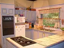 Interior sets were built at the Seven Network's HSV studios in Melbourne.[9] When Seven cancelled Neighbours in July 1985, it was immediately picked up by Network Ten. When the sets were due to be collected, Seven said they had been destroyed in a fire, forcing Ten to build new sets.[12] The interior scenes are now filmed at Global Television studios in Forest Hill.[13][14] In the 1980s, the interior decor of the houses was meant to be "unobtrusive and easy to watch." The majority of the furniture and wallpaper came from normal stores, but the curtains had to be specially made to hide the fact the scenes outside the windows were painted.[15]