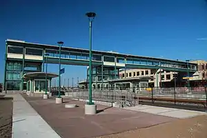 Ramsey station is a commuter rail station along the Northstar Line in Ramsey, Minnesota, approximately 35 minutes from downtown Minneapolis. It is the first infill station on the route, fitting between stations in Elk River and Anoka. Those stations opened when Northstar began service on November 16, 2009, while Ramsey opened just over three years later on November 14, 2012. The station is located next to Ramsey's city hall at The COR (formerly known as Ramsey Town Center), a transit-oriented development next to the line. Construction on the station began on March 27, 2012,[2] and was completed on November 8;[3] the station was opened on November 14.[4][5][6] The commuter rail service replaced the Ramsey Star Express commuter bus (route 856) that connected the city to Minneapolis.[7]