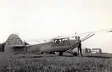 On 3 July 1937, the official opening of Ramsgate Airport was performed by Director-General of Civil Aviation Sir Francis Shelmerdine.[2] The airport terminal/clubhouse was designed by art deco architect David Playdell-Bouverie[18] and incorporated the control tower at its centre.[19] From 17 to 31 July, 611 (West Lancashire) (Bomber) Squadron, Royal Air Force held a camp at Ramsgate.[20] In August, an air race was held at Ramsgate. The race was won by Paul Elwell in Taylor Cub G-AESK. Alex Henshaw was third in Percival Mew Gull G-AEXF and Geoffrey de Havilland was seventh in De Havilland T.K.2 G-ADNO. Sixteen aircraft participated in the race. Thirteen of them were British, with two German and one Latvian entry.[21]