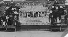 Williams' main draw in 1897 were films supplied by Haydon and Urry of Queen Victoria's Jubilee Procession on 22 June 1897. The company opened its own film production studio in April 1897 [33] and the Jubilee films (a series of six films) were produced by James and Richard Monte, two brothers employed by the firm.[34] The films were exhibited at the London Pavilion the same night they were filmed and are believed to have been the first footage of the Queen's procession to be seen by the public.[35] A second copy of the films was dispatched by train to Liverpool where they were exhibited by the owners of Reynolds Waxworks and Variety Exhibition on Lime Street within 24 hours of the procession having taken place.[36][37]