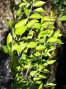 Randia moorei, commonly known as the spiny gardenia, is a rare Australian shrub growing in the far north eastern areas of the state of New South Wales and adjacent areas in Queensland.[1] The habitat is subtropical rainforest north of Lismore.