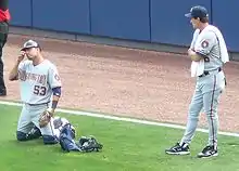 ![]() St. Claire (right) with Nationals catcher Wil Nieves in 2008. | |