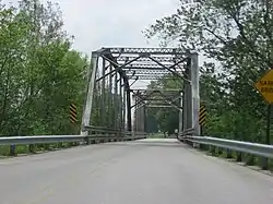 Rangeline Road Bridge is a historic Camelback Through Truss bridge that spans the Wabash River in Huntington Township, Huntington County, Indiana. It was built in 1913 by the Lafayette Engineering Co. of Lafayette, Indiana. It consists of two steel truss spans, each 128 feet long and 21 feet deep at mid-span.[2]: 5