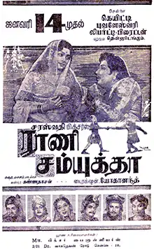 Rani Samyuktha (transl. Queen Samyuktha) is a 1962 Indian Tamil-language historical romance film directed by D. Yoganand. The film stars M. G. Ramachandran as Prithviraj Chauhan and Padmini as the eponymous queen. It was released on 14 January 1962, and performed averagely.