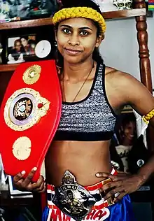 Ranini Cundasawmy (born 19 May 1984) is a Mauritian Muay Thai, Savate and Kun Khmer (Pradal Serey) fighter. fighter. She has won several national and world championships from the World Muay Thai Federation.[3][4][5][6][7]