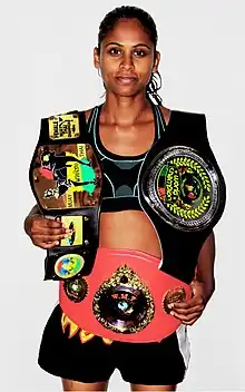 - 2013 - Won the Mauritius Muay Thai Female Championship Belt[27]