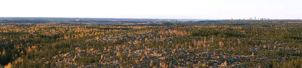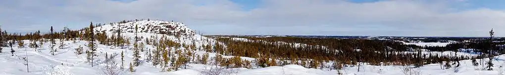Ranney Hill (pronounced, 'Ran-ee") is a rock outcrop approximately 10 kilometers north of Yellowknife, the capital city of the Northwest Territories of Canada.[1] At 682 ft / 208 m. high, it is one of three visible outcrops that can be seen north of the city.[2] It is an anomaly rising from the relatively flat Canadian Shield.