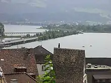![]() Rapperswil-Jona as seen from Kempraten-Lenggis, Jona to the left, Rapperswil and Seedamm to the right, Obersee (upper Lake Zürich) and Lachen (SZ) in the background (March 2010) | |