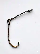 The finds include ceramic and dress pins, daggers, arrowheads, and fish hooks made of bronze, which were probably thrown as offerings into the lake. The individual finds are varied, including pottery shards, an almost completely preserved decorated ceramic vessel, a stone and a bronze ax and a piece of a gold wire; a rare golden object yet discovered from the Bronze Age in Switzerland. As remarkable is a mold made of soapstone for razor of the so-called alpine type. Such blades have been found in the Alpine region, where the soapstone comes from, so the settlement probably served as a hub for the trade with the Alpine passes.[4][5]