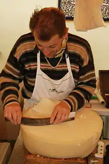 Raspadüra was born as a poor food: in the past it was made from imperfect Granone Lodigiano cheese wheels, while today healthy wheels are used, aged enough to be cut without crumbling.[3]