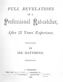 Cover of the 1898 publication Full Revelations of a Professional Rat-Catcher by Ike Matthews