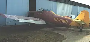 Rawdon R-1 was designed by Herb Rawdon in 1938 and a single example was built. It was a single-engine twin-seat side-by-side open cockpit low-wing training monoplane powered by a 75 h.p. Lycoming engine. It had a maximum speed of 110 mph and a cruising speed of 105 mph.[1] The R-1 was not accepted as a trainer by the U.S. Army Air Corps and it was modified as a crop spraying aircraft.