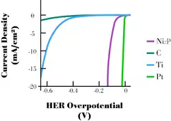 The publication, “Nanostructured Nickel Phosphide as an Electrocatalyst for the Hydrogen Evolution Reaction”, explained electrocatalytic activity and stability of nanostructured nickel phosphide (Ni2P) for the hydrogen evolution reaction (HER) in acidic solutions. Schaak and co-workers also proposed that other known hydrodesulfurization (HDS) catalysts could be candidates of HER electrocatalyst since Ni2P is originally only known as an HDS catalyst.[3]