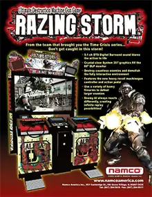 Razing Storm is a light gun rail shooter arcade game developed and published by Namco Bandai Games for the System 357 board. It is the second spin-off of the Time Crisis series published by Namco after Crisis Zone.