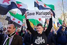 Protests against Russian bombing of Mariupol by Syrian activists in Central London, March 2022