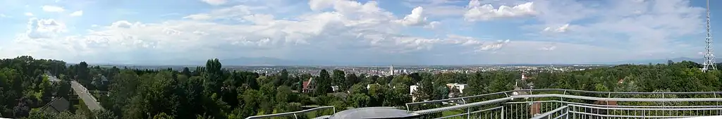 • The radio tower Émetteur du Belvédère[4][5] is in fact the relay station Mulhouse of TDF, a company which until 2004 was called TéléDiffusion de France. It has a height of 636 ft.