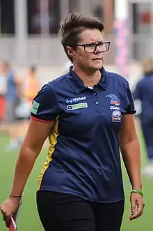 Rebecca Goddard OAM (born 1978) is a former Australian rules football coach who most recently served as the head coach of the Hawthorn Football Club in the AFL Women's competition (AFLW).[2] Goddard also previously coached Adelaide Football Club in the AFL Women's competition (AFLW) between 2017 and 2018, winning the 2017 AFL Women's Grand Final. She was assistant coach of the University of Canberra Capitals in the Women's National Basketball League (WNBL) in 2018/19, when it won the league championship.