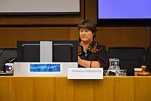 Johnson is a member of the International Panel on Fissile Materials (IPFM). She is a part of the women’s advisory group for the International Action Network on Small Arms (IANSA). Also she was one of the founders[4] of Women in Black London.[5]