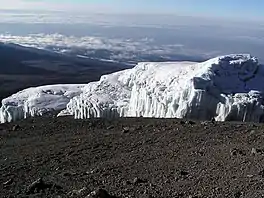 ![]() Rebmann Glacier on the Summit of Mount Kilimanjaro in 2003 | |