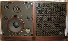 Some of these early 3-way models featured 10" and 12" woofers manufactured by Jensen ("Flex-Air") and CTS (Chicago Telephone Supply), 5" whizzer cone squawkers manufactured by Philips Electronics of the Netherlands, and 2" and 2.5" cone tweeters by Peerless of Denmark.[32] The Rectilinear speakers were typically, but not always, of ported design and finished in walnut with fabric or fretwork grilles. Many models featured one, or sometimes two, rear tone controls. The company offered some of their models as kits and "semi-kits".[33]