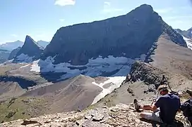 Red Eagle Glacier is a glacier remnant (glacieret) in Glacier National Park in the U.S. state of Montana. The glacieret is a hanging glacier located on the north slope of Clyde Peak, and to the southeast of Mount Logan and Logan Glacier.[3] Between 1966 and 2005, Red Eagle Glacier lost 53 percent of its surface area and now covers less than 25 acres (0.10 km2) which is below the threshold to qualify as an active glacier.[2] Comparing images of the glacier taken in 1914 with those from 2009, indicates that the glacier has experienced extensive retreat.[4]