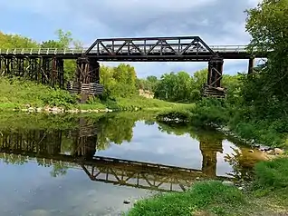 The town of Red Lake Falls soon after was platted by Mr. Buse, who then moved on to other environs. The Kankel family continued as a prominent presence in the town through the 1950s. The town prospered for a time, as both the Northern Pacific Railway and the Great Northern Railway ran their lines through the town in the 1880s and early 1890s (both lines are now abandoned), and when Red Lake County split off from Polk County, in 1896, Red Lake Falls became the county seat of the newly formed county, a reason for existence that persists to the present day. The population peaked shortly afterward, in 1900, and has been in decline ever since.