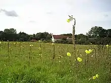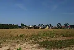 Red Lodge Heath is an area of acid grassland and lowland and is an SSSI, with a number of nationally rare plants and animals.[5] It includes a population of the five-banded tailed digger wasp, Cerceris quinquefasciata, which nests in bare sand along a path to the north of the site, and on sparsely vegetated slopes to the west.[6] Discovery of the wasp population in 2005 by English Nature meant that Forest Heath District Council had to adapt proposed housing and school development plans in this area of the village.[7]