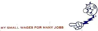 Throughout this period, RKI was a prolific producer of promotional materials and incentives, broadly distributed by licensees. Trinkets ranging from men's and women's jewellery, writing instruments and lighters, to oven mitts, aprons and playing cards, featured Reddy Kilowatt's consistently smiling face. Collins’ prime objective remained unchanged: to provide a human, accessible face to the business of energy generation. The theme is evident in RKI art from the time: a winded Reddy running uphill to demonstrate the stress of rising costs; Reddy in hunting togs warning shooters away from power lines; a smiling Reddy framing a power bill as his “wages”.[19]