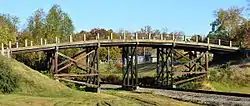 Following the arrival of the Little Rock, Mississippi River and Texas Railway,[8][9][10] also known as the "Arkansas Valley Route," a small settlement grew up around the new station named for company president Jared Redfield of Essex, Connecticut.[11][12] Founded on December 20, 1880,[13] Redfield was incorporated by the Jefferson county court on October 18, 1898.[7] Six local properties have been added to the National Register of Historic Places (NRHP): Dollarway Road (1974), West James Street Overpass (1995), Lone Star Baptist Church (2005), Redfield School Historic District (2014), and Redfield Commercial Historic District (2023).