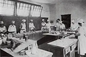 Dedicated while still under construction by Florida governor Sidney Johnston Catts on the Fourth of July, 1916, the Redland Farm Life School opened its doors to 195 students on October 16, 1916, consolidating one-room schools from Redland, Goulds, Eureka, Modello, Princeton, Murray Hill, and Silver Palm into a single modern educational facility with classrooms for grades one through twelve.[1][2][4] The school contained indoor bathrooms, electric lighting, drinking fountains, a science laboratory, a home economics department, cloak rooms, a cafeteria, and a stand-alone 3200-square-foot (300 m²) auditorium that seated 300 people.[2][3][1] Area children living in outlying areas were for the first time transported by bus.[2][3] The buses consisted of a slatted, roofed “cattle car” type of trailer with seats for 85 children hauled by a separate tractor.[4] The school had separate teachers for grades one through eight, along with a small high school and an agricultural program.[4]