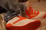 The Freestyle debuted as a terrycloth lined sneaker with "glove-soft" leather designed for aerobics workouts.[2] The shoe was designed for fitness purposes but became used for casual wear as well.[16] The shoe comes in two different styles including below the ankle, like a tennis shoe, or the high-top style that covers the ankle, like a basketball shoe. The Freestyle high-top features two velcro straps that fasten around the ankle and is made in women's sizes, but is considered unisex, being also worn by men.[17] Both the low-top and high-top were offered in white, black, red, yellow, blue, pink, orange, and green colors over the years.