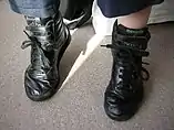 Released in 1982, the Reebok Freestyle was the first athletic shoe designed for women, even though it has also become fairly popular among males.[3] Martinez and Steve Liggett, head of Reebok production, were instrumental developing the shoe.[9] The shoe was made to accommodate aerobics workouts and was released during the height of the 1980s aerobics craze.[10] Fitness Instructor Denise Austin was one first to promote the shoe by wearing them at a sport and fitness exposition in Los Angeles.[11] "I absolutely loved this time in my career, I was the first spokesperson for the very first aerobic shoe," Austin said in a November, 22, 2019 Facebook post.[12][13] Following the debut and success of the Freestyle, Reebok began sponsoring clinics and workout programs throughout the 1980s and 1990s. The shoes could be seen on the trainers of Jane Fonda workout videos and classes,[2][14] and the Step Reebok workout routine was released in 1989.[15]