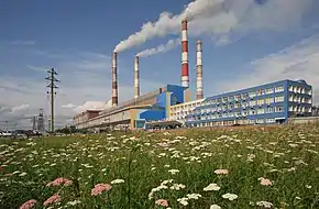 Reftinskaya GRES is the largest solid fuel thermal power plant in Russia.[1] It is situated in Sverdlovsk Oblast, 100 km north-east of Yekaterinburg and 18 km from Asbest. Reftinskiy town, which is home to 18,000 people, is situated 2.5 km from the GRES, which produces 20,000 million KWh annually. It has a total installed capacity of 3,800 and heat power 350 GKh. Coal from Ekibastuz's coal field (16,3 МJ/kilo of calorific value, ash content for moisture-free fuel is 43,3 %) is used as the main fuel and the black oil is used as the starting fuel. GRES produces power with the bar «Outdoor switchgear -500 kV» on five power lines -500 kV and with the bar «Outdoor switchgear -220 kV» on five power lines -220 kV. The station supplies power to the industrial areas in Sverdlovsk, Tyumen, Perm and Chelyabinsk regions. The construction of the electric power station was started in 1963, the launching of the first power unit took place in 1970 and the last one in 1980.