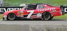 Smith returned to the Cup Series in 2016, driving the No. 7 for Tommy Baldwin Racing, a few hours after Alex Bowman was released from the ride.[16] He started his season with a solid 8th-place finish in the Daytona 500. He had a dismal spring and summer showing with his best finish in 16 starts being 23rd, at Fontana. He later rebounded at the 2016 Pennsylvania 400 with a third-place finish,[17] matching the best finish in the history of TBR set by Dave Blaney at the 2011 Good Sam Club 500.[18] Smith ran the full 2016 schedule for TBR with the exception of the Teenage Mutant Ninja Turtles 400, for which he was replaced by Ty Dillon as he flew to North Carolina to await the birth of his child.[19]