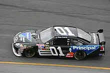 Smith returned to the No. 01 for 2008 as its sole driver, with Martin moving over to the No. 8. The team operated with little to no sponsorship (Principal Financial Group was the main sponsor), but managed to stay in business the entire season. Smith lost out his first win at Talladega Superspeedway because on the final lap, in the trioval, he passed Tony Stewart for first place, but it was announced that Smith went below the yellow line when he made the pass; the victory was given to Stewart. Smith said that he was pushed down by Stewart.[2]