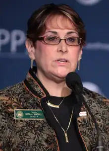 ![]() Regina Birdsell speaking at the Americans for Peace, Prosperity & Security Forum. | |