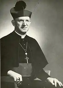 On July 26, 1944, Mallett was elected Bishop of Northern Indiana on the first ballot, during a special convention.[4] He was consecrated on October 25, 1944, in St James' Church, South Bend, Indiana. During his episcopacy, St James' would become the diocesan cathedral (1957). Mallett was episcopal visitor to St. Gregory's Abbey, Three Rivers, Michigan and served as Superior-General of the American Branch of the Confraternity of the Blessed Sacrament from 1946 to 1965. He retired on October 29, 1963, due to failing health. He is buried in St. James Memorial Chapel, Howe, Indiana.[5]