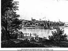 Urban development occurred at a very fast pace: overall, the urban population had doubled by 1850.[62] Population estimates for Bucharest, the capital of Wallachia, were about 70,000 inhabitants in 1831, 60,000 in 1851,[63] and about 120,000 in 1859. For Iași, the capital of Moldavia, the estimates were 60,000 inhabitants for 1831, 70,000 for 1851,[63] and about 65,000 for 1859.[64][58] Brăila and Giurgiu, Danube ports returned to Wallachia by the Ottomans, as well as Moldavia's Galați, grew from the grain trade to become prosperous cities.[28][37][58] Kiselyov, who had centered his administration on Bucharest, paid full attention to its development, improving its infrastructure and services and awarding it, together with all other cities and towns, a local administration (see History of Bucharest).[65] Public works were carried out in the urban sphere, as well as in the massive expansion of the transport and communications system.[66]