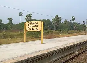 Regupalem railway station (station code:REG[2]), is an Indian Railways station in Regupalem, a village in Visakhapatnam district of Andhra Pradesh. It lies on the Vijayawada–Chennai section and is administered under Vijayawada railway division of South Central Railway zone.