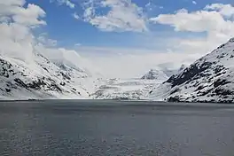 Reid Glacier is an 11-mile-long (18 km) glacier in the U.S. state of Alaska.[1] It trends north to Reid Inlet in Glacier Bay National Park and Preserve, two miles (3 km) south of Glacier Bay and 72 miles (116 km) northwest of Hoonah. It was named by members of the Harriman Alaska Expedition for Harry Fielding Reid.