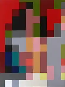 After being trained as a ceramist, Voigt studied from 1965 to 1971 with Hans Thiemann, David Hockney and Gotthard Graubner, among others, at the Hochschule für bildende Künste Hamburg. After his studies, he had solo exhibitions at the Galerie M. E. Thelen in Cologne. Voigt was also featured in a solo presentation in the now legendary exhibition series "14 x 14" at the Kunsthalle Baden-Baden (1968-1973) alongside Palermo, Rainer Ruthenbeck, Georg Baselitz, Gerhard Richter and others of the then emerging generation of German painters.[1] The painter emigrated to New York in 1978, moved to Los Angeles in 1985, and in 2000 moved to Upstate New York, where he remained until his return to Berlin in 2017. Voigt has always been faithful to the grid he developed in the academy as a basis and site for exploring the categories of form, abstraction, figuration, anonymity, ductus, color tonality, and ultimately beauty and legibility. The formal stringency of his approach has consequently led to describing his work as a negotiating space of the art-historically significant grid.[2] It is in this context that his work was also exhibited in the 2012 exhibition "Rasterfahndung" alongside those of Roy Lichtenstein, Sigmar Polke, and others at the Kunstmuseum Stuttgart.[3][4] Only recently has a reassessment taken place that also situates Voigt's lifelong work as a commentary on post-1945 German painting.[5] Works by the artist are in the Bank of America Collection, London, the Eli Broad (Sun America Collection), Santa Monica, USA, the Kunstmuseum Stuttgart, the Collection of the State of Baden-Württemberg, the Städtische Galerie, Wolfsburg, the Museum of Modern Art, New York,[6] and in numerous private collections. Reinhard Voigt was awarded a grant from the Stiftung Kunstfonds in 2021 for the cataloguing of his works.[7] The artist lives and works in Berlin.[8]
