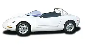 The car was to use an ABS body on an aluminum backbone chassis.[3] Although the first prototype had a fiberglass unibody,[1] later vehicles used an aluminum chassis and a plastic body.[4][5] The total weight was about 2,200 lb (998 kg) at the prototype stage, with plans to reduce it by a further 400 lb (181 kg) in the production version;[1] the manufacturer ultimately specified the weight of the car as 1,960 lb (889 kg).[3]