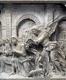 The protagonist of this fortunate as well as brief period, cut short in 1512 with the invasion of the French and the subsequent sack of Brescia, was Gasparo Cairano, acknowledged author of works of the highest artistic level such as the ark of Sant'Apollonio, the Caprioli Adoration, the Martinengo Mausoleum, and, first and foremost, the cycle of the Caesars for the elevations of the Palazzo della Loggia, praised in print as early as 1504 by Pomponius Gauricus' De sculptura.[27] Contemporaries of Cairano were other authors, often present in Brescia only for short periods of their careers, such as Tamagnino and the Sanmicheli workshop, along with other minor artists placeable in the master's circle, such as Antonio Mangiacavalli and Ambrogio Mazzola, while many of the sculptors of Venetian influence active in the city during the entire second half of the 15th century remain largely anonymous.