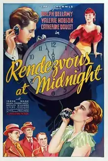 Rendezvous at Midnight is a 1935 American mystery film directed by Christy Cabanne and starring Ralph Bellamy, Valerie Hobson, Catherine Doucet and Irene Ware. The film was produced and distributed by Hollywood studio Universal Pictures.[1][2][3] The film's title was originally intended for Secret of the Chateau, released the previous year, and the working title was then recycled for this film.[4]