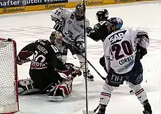 Rene, a free agent, re-signed to one-year deal with the Penguins for the 2000–01 season.[3] Corbet was besieged with injuries, missing half the year but returned to help the Pittsburgh to the Conference finals before moving to Germany in 2001 to join Adler Mannheim of the DEL. Corbet played with Mannheim for the next eight years, leaving the team as the Franchise leader in goals (130) and Captaining the team to the German Championship in 2007 and two cups.[4]