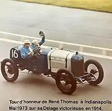- 1 2 "Rene Thomas, 1914 Indianapolis Winner, Is Dead. French Racing Driver Who Set Record of 82.4mph With a Delage Was 89". New York Times. 25 September 1975. Retrieved 2 October 2012.