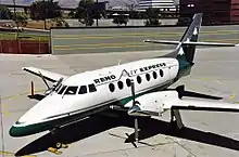 Following the development of its Reno hub, the airline established a second hub at San Jose International Airport (SJC) in late 1993 by leasing gate space from American Airlines.[3] According to its December 15, 1993 system route map, the airline operated nonstop flights from San Jose to Burbank, CA (BUR), Las Vegas (LAS), Los Angeles (LAX), Ontario, CA (ONT), Phoenix (PHX), Portland, OR (PDX), Reno (RNO) and Seattle (SEA).[4] In addition to operating jet service from its new San Jose hub, Reno Air also entered into a code sharing agreement with Mid Pacific Air to operate connecting passenger feeder service as Reno Air Express flown with British Aerospace BAe Jetstream 31 commuter turboprops with service to Chico, CA, (CIC), Eureka, CA (ACV), Klamath Falls, OR (LMT), Medford, OR (MFR), Monterey, CA (MRY), Redding, CA (RDD) and Santa Rosa, CA (STS). Meantime, American Airlines had earlier expanded its presence in the San Jose market in northern California with its purchase of AirCal (formerly Air California) several years earlier but was experiencing stiff competition from Southwest Airlines concerning air fares and desired to outsource the SJC operation to a lower cost operator. At the same time, Reno Air joined American's AAdvantage program thus allowing AAdvantage members to earn credit by flying on Reno Air. Reno Air subsequently posted its first annual profit in 1995.