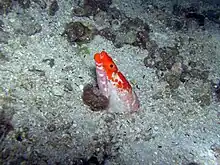 It is a marine, tropical eel which is known from the Indo-Pacific. It dwells at a depth range of 1 to 35 m (3.3โ114.8 ft), and inhabits burrows formed in sandy areas in rocky and coral reefs. During the night it often lets its head and neck protrude from its burrow, but during the day it only leaves its snout and some of its head exposed. It can reach a maximum total length of 101 cm (3 ft 4 in).[2]