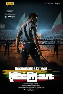 Responsible Citizen (Burmese: နိုင်ငံကြီးသား) is a 2019 Burmese political action film, directed by Steel (Dwe Myittar) starring Nay Toe, Min Maw Kun, Htun Htun, Nay Htet Lin, Nay Myo Aung, Zin Wine, Min Thway, Si Phyo, Moe Yan Zun, Htun Ko Ko, Shwe Thamee and Awn Seng. The film, produced by Arr Man Production premiered Myanmar on August 8, 2019.[1][2][3][4][5][6][7][8][9][10][11]